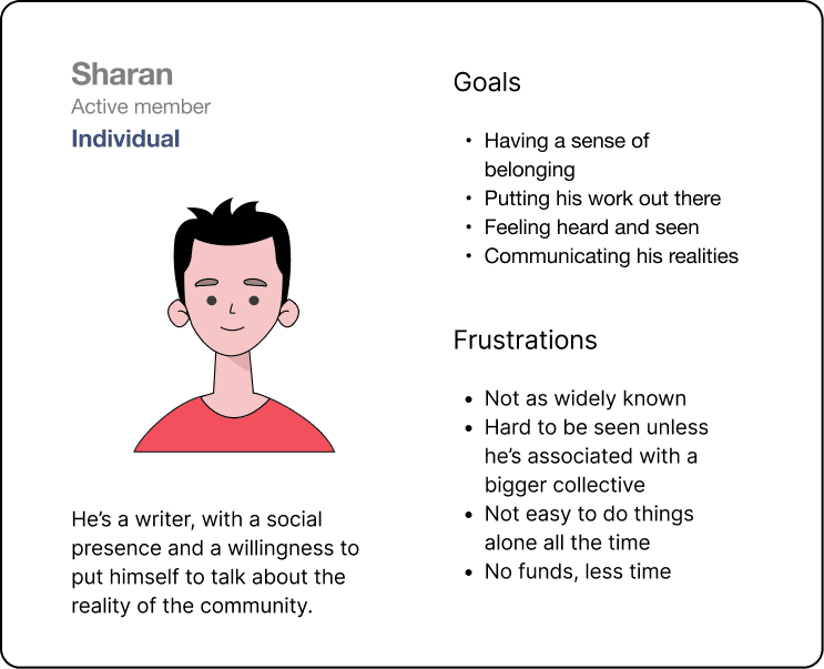By consciously renaming user personas to stakeholder profiles, I was able to put the community members at the crux of the process instead of on the other side of the "solution"/project.