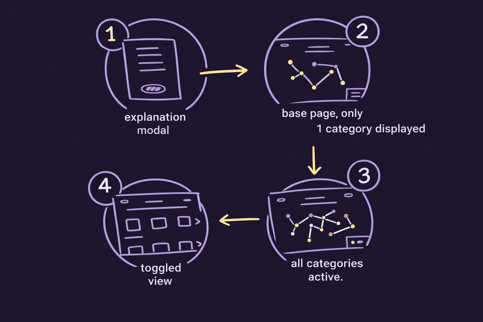 Supports nonlinear, visitor-driven exploration. Visitors could begin anywhere and follow paths, discovering new, relevant materials along organic connections, reflecting lived realities over rigid