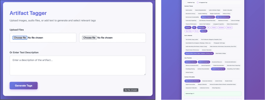 Coding and creating - Ai tagging, Artifact creations