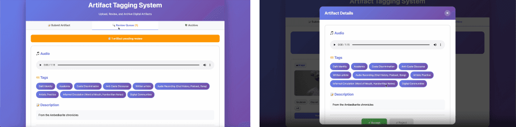 The workshop was hosted to see how different members of society would interact with the platform. Dalit’s would not be the only ones who entered the space, so how then would someone with varied lived experiences take in the artifacts, and the need for a space like this. Another main aspect we delved into was how differently “perceived ethics” and “needed ethics” were articulated and perceived by these participants.